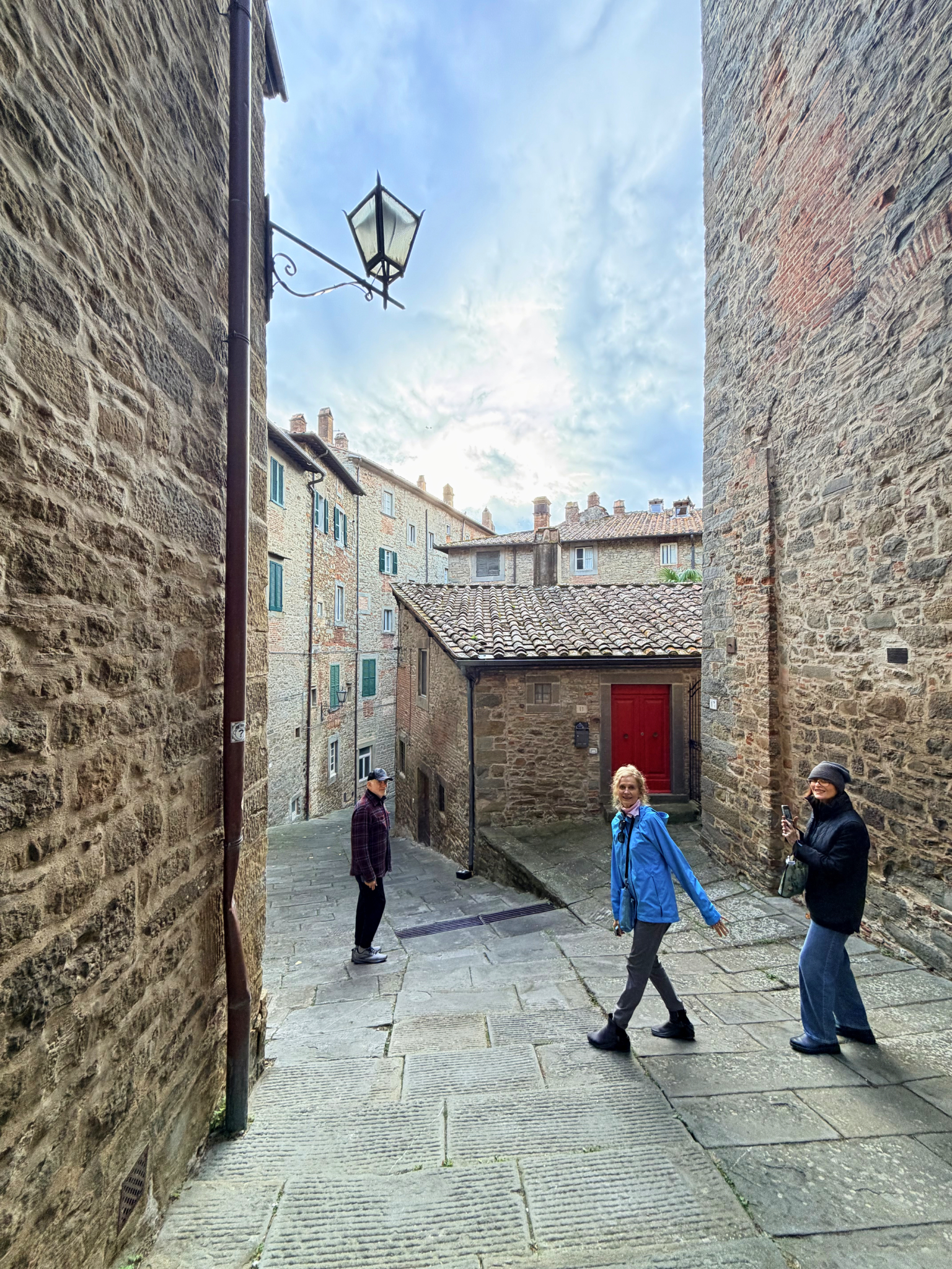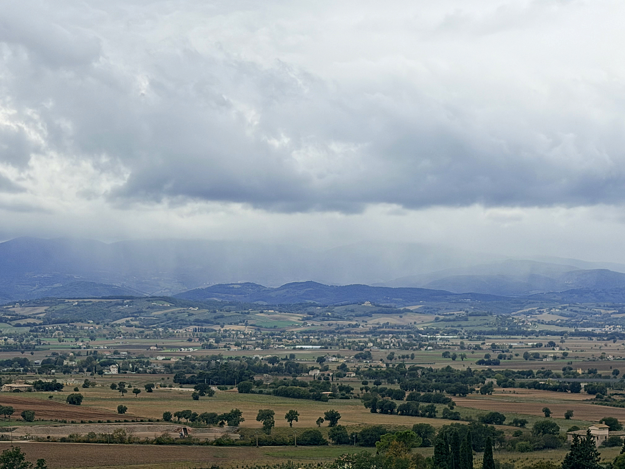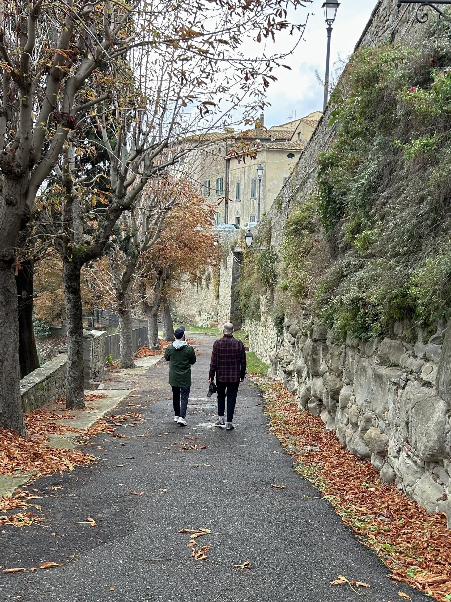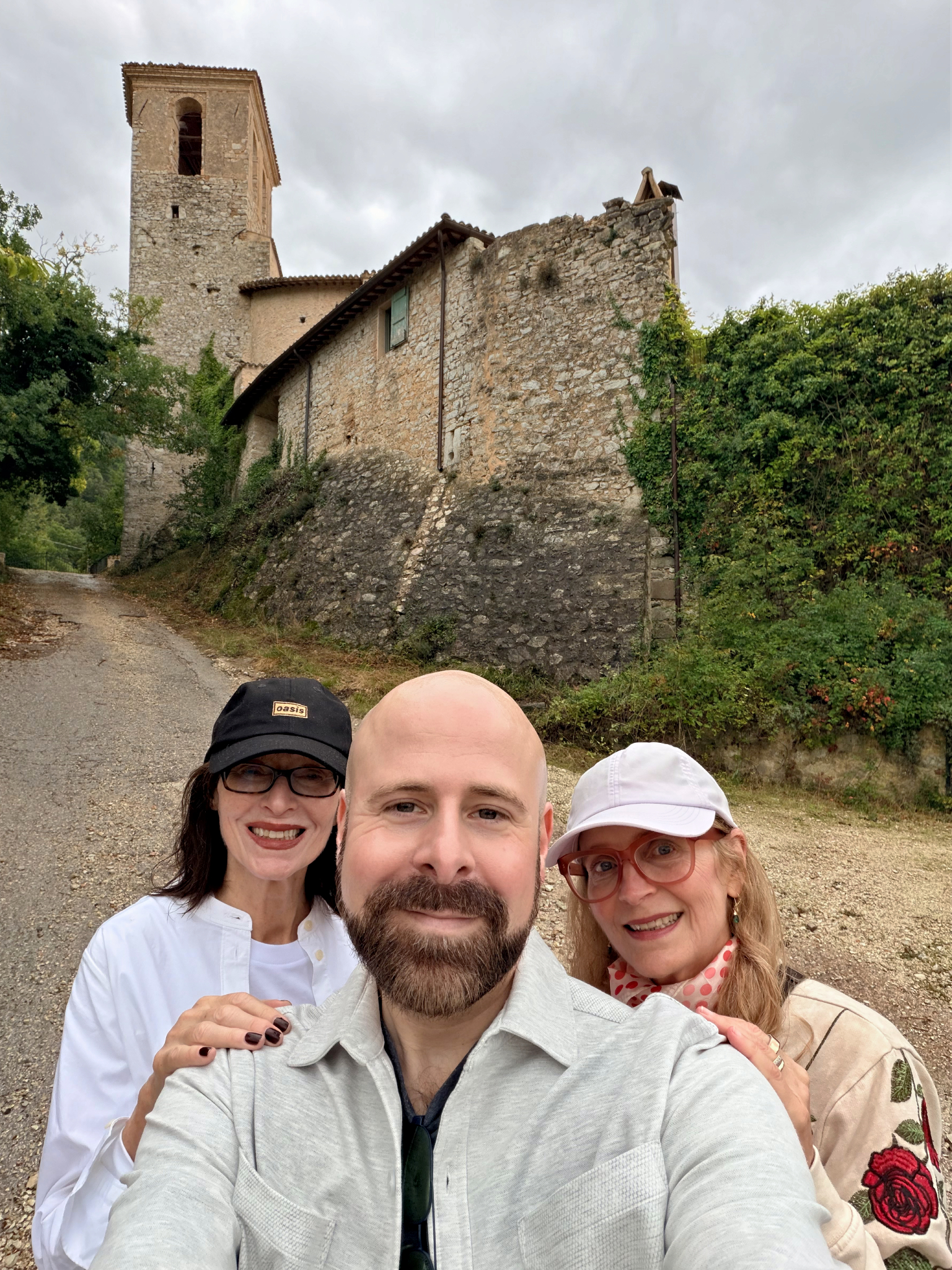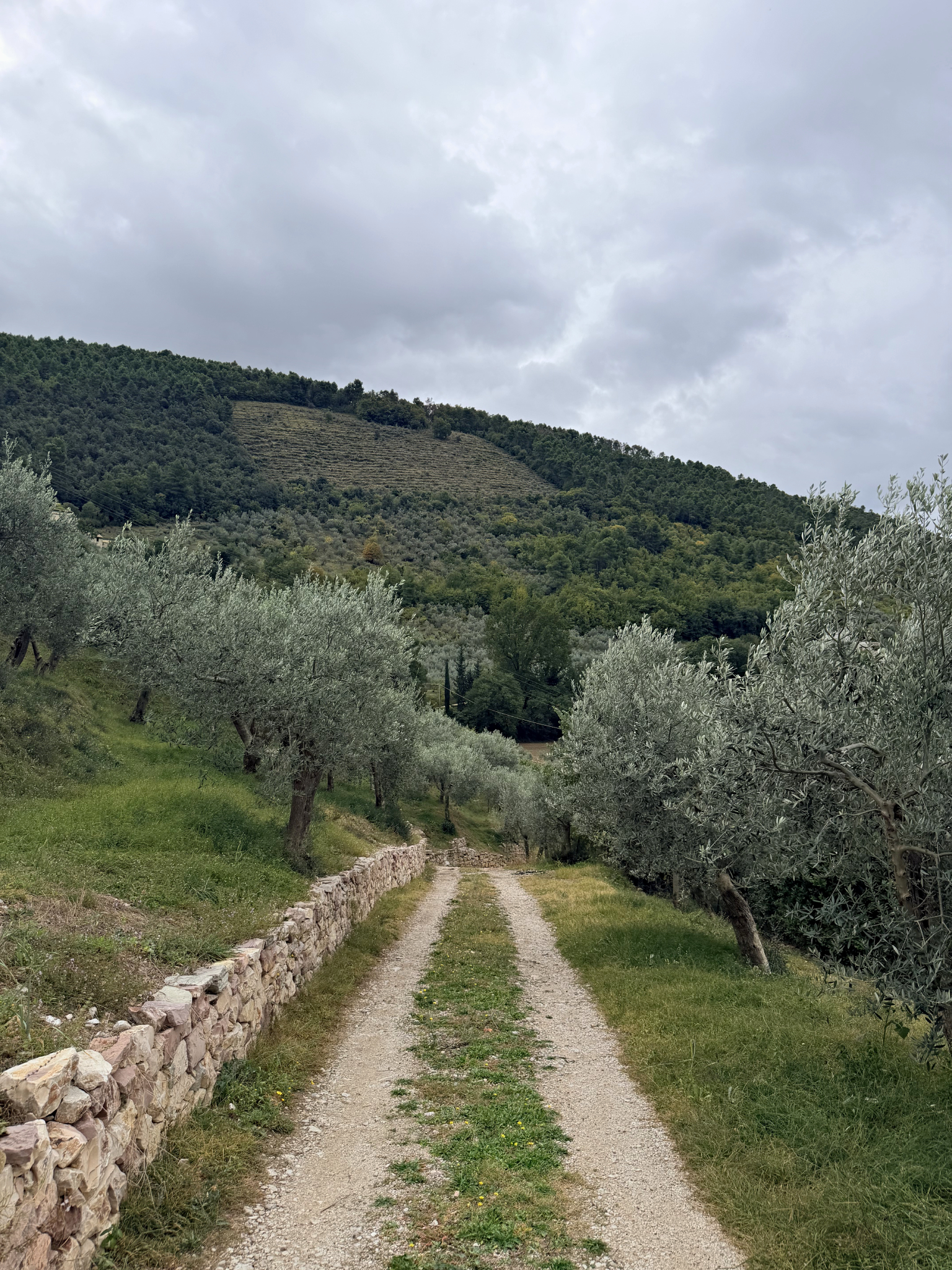 After the fast pace of Florence, everyone was looking forward to some peace and quiet. Karen, Tricia, and I hiked up to Castello di Poreta, a historic stronghold that was once turned into a restaurant but now sits vacant. We followed ancient mule paths that have been converted into a circuit of hiking trails with excellent signage. As we began our descent, the skies suddenly opened. While I typically harbor a deep-seated aversion to being caught in the rain fully clothed, there was an undeniable, almost ethereal magic in being thoroughly drenched alongside my friends as we navigated the ancient Umbrian hills.