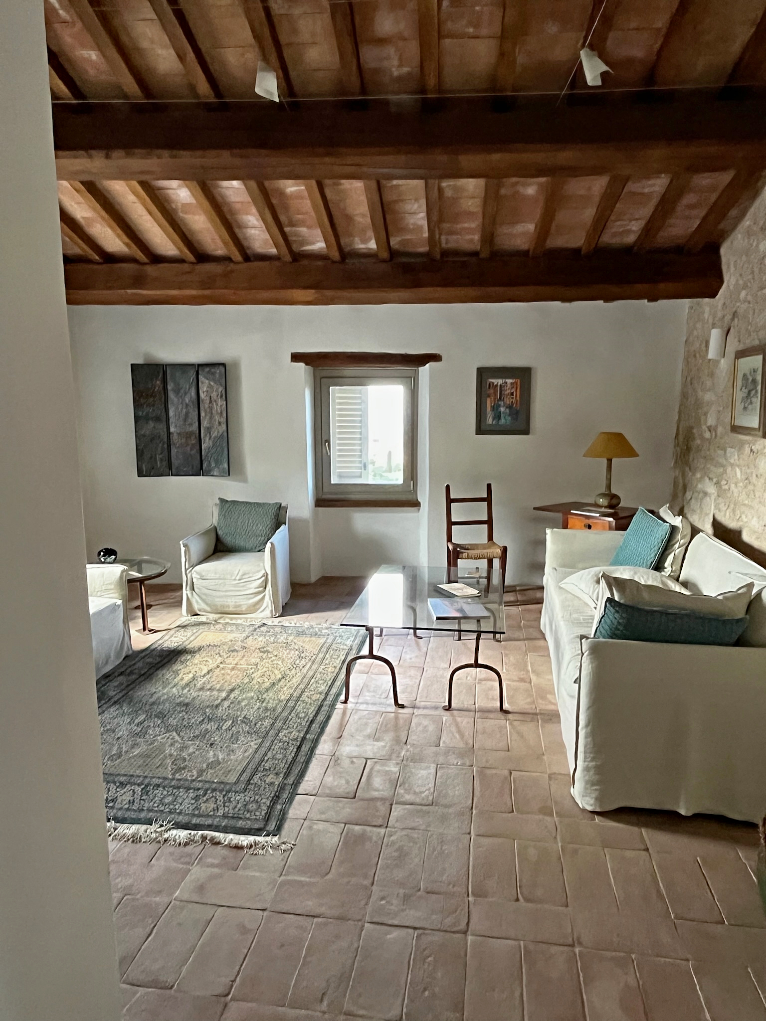 In a classic rural Italian layout, the bottom level was once reserved for goats and cows, with various storage spaces attached to the main house. All the spaces were combined into a lovely and very comfortable four-bedroom, four-bathroom villa. Dinner that first night was a quick walk downhill to Torre dell’Anima, where Jim had prepared a delicious pumpkin soup and whole roasted salmon—a simple, elegant meal that served as the perfect welcome to the warmth of Umbria.