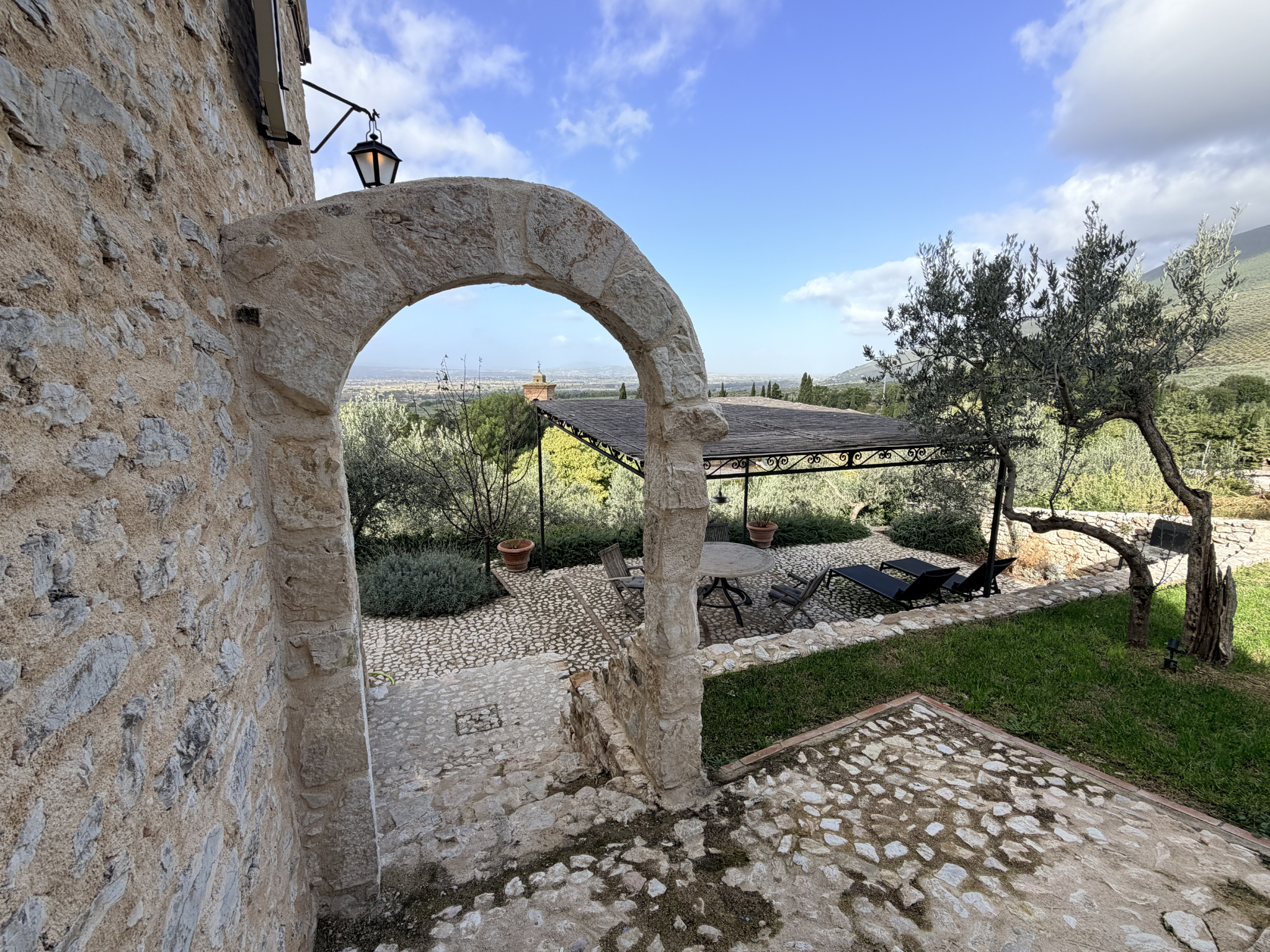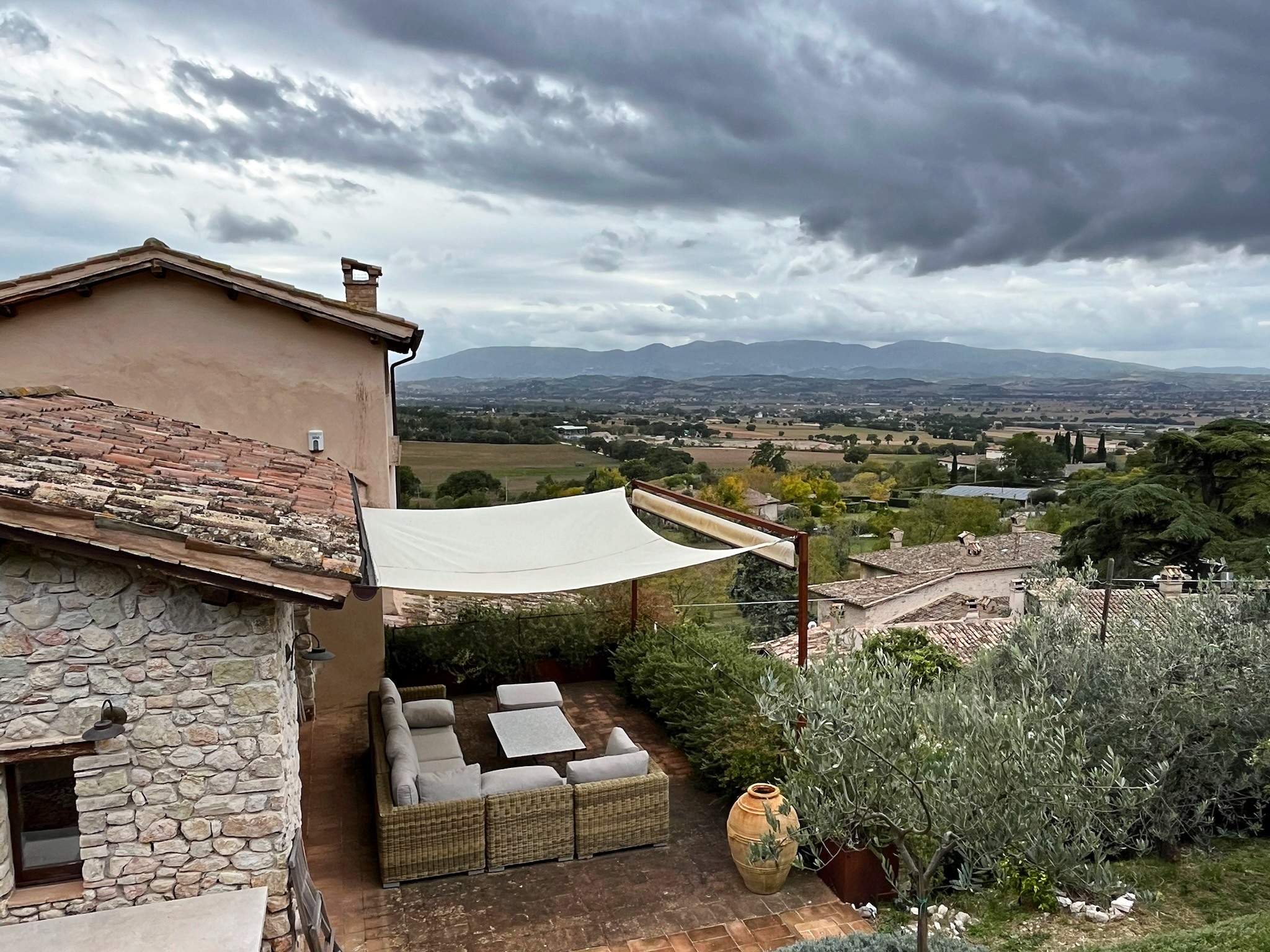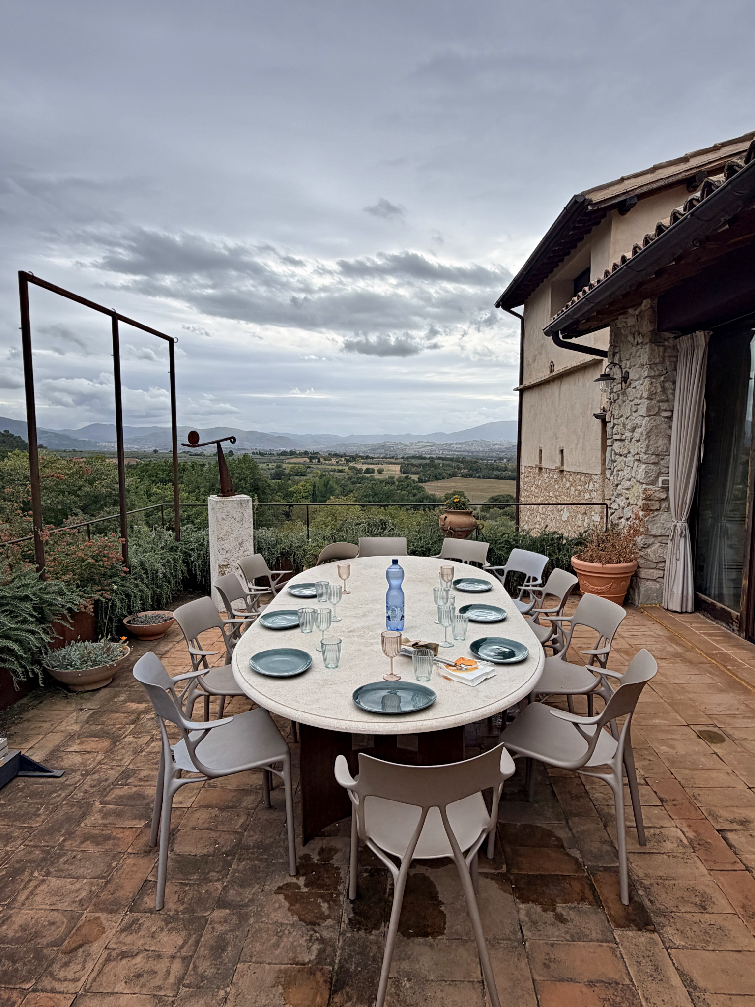 The next morning, I woke up to a verdant paradise. Seeing the property and surroundings in daylight was utterly breathtaking; the house cascades down a hillside surrounded by mature olive groves and terraces with views extending across the Val Umbra.