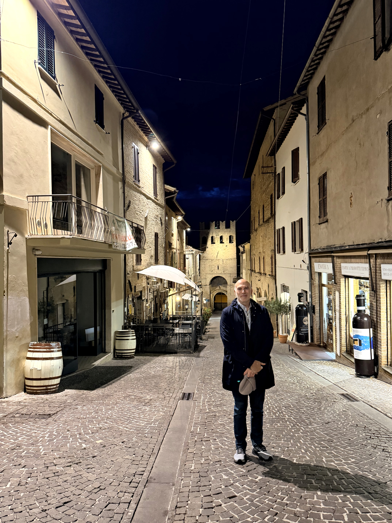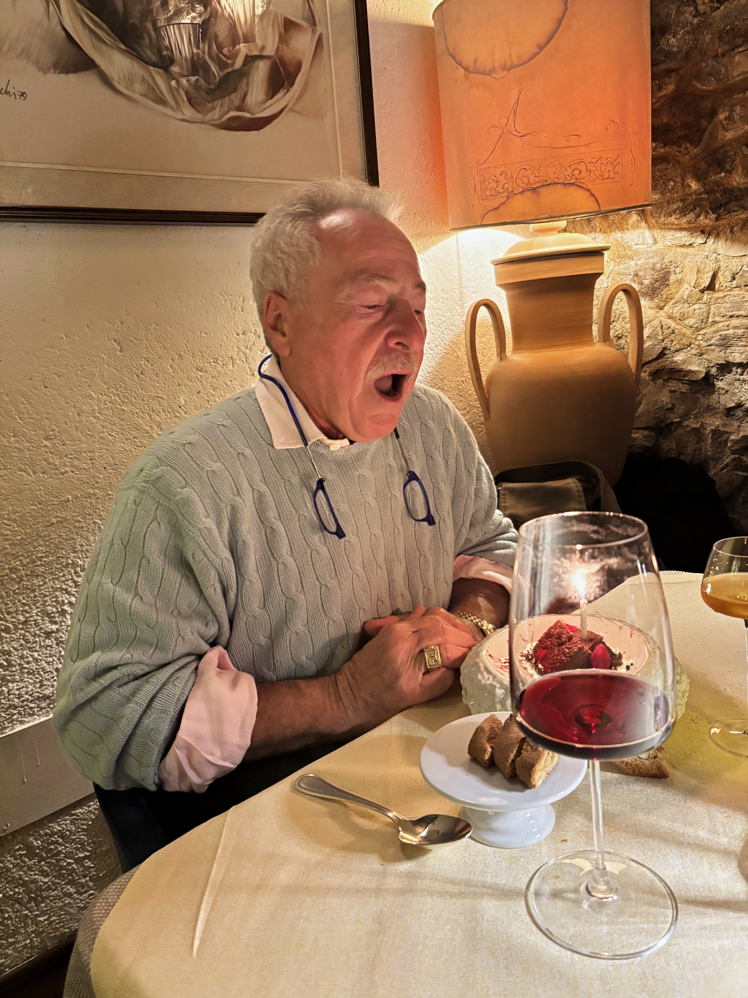 The menu at Apollinare is known for elevated Umbrian cuisine. We toasted Jim with local sparkling wine before diving into some of the restaurant’s signature dishes, including their renowned duck breast and local lamb prepared with innovative seasonal accents. The attention to detail, from the presentation to the wine pairings, made for a truly festive and memorable evening.
