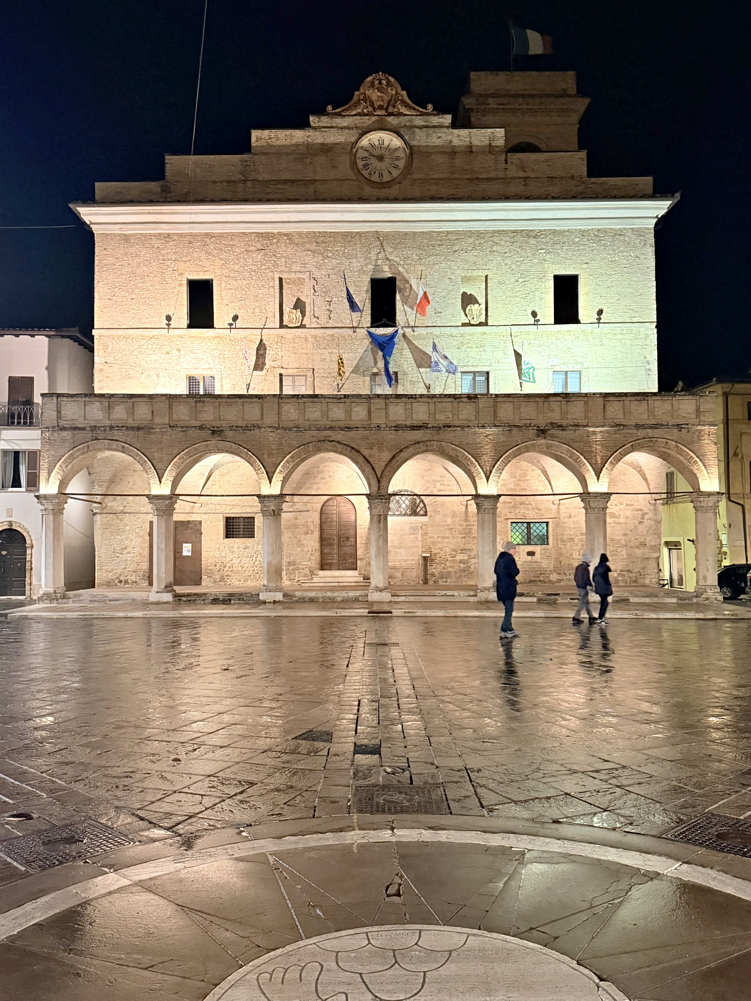 That night, we dined at La Foresteria in Trevi. Amy and Jim joined us, and I’m glad Jim was driving because our van wouldn’t have fit through the narrow Porta Nova to enter the town. The restaurant is located within the historic Palazzo Paolelli, a grand estate handed down to the restaurant’s young proprietor and his wife from his parents and grandparents. The space has been beautifully restored, maintaining the grand architectural bones of the palazzo. We enjoyed a small but perfectly prepared menu featuring dishes like tender slow-cooked wild boar and hand-rolled pasta with local herbs, all shared over a bottle of delicious white biodynamic Pecorino wine.