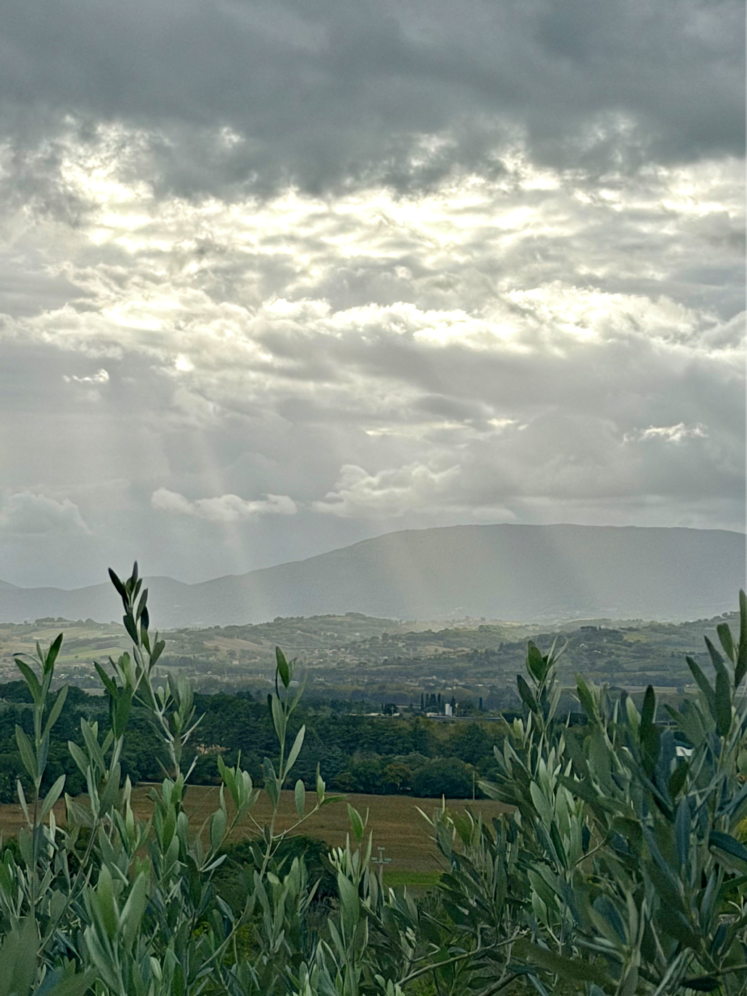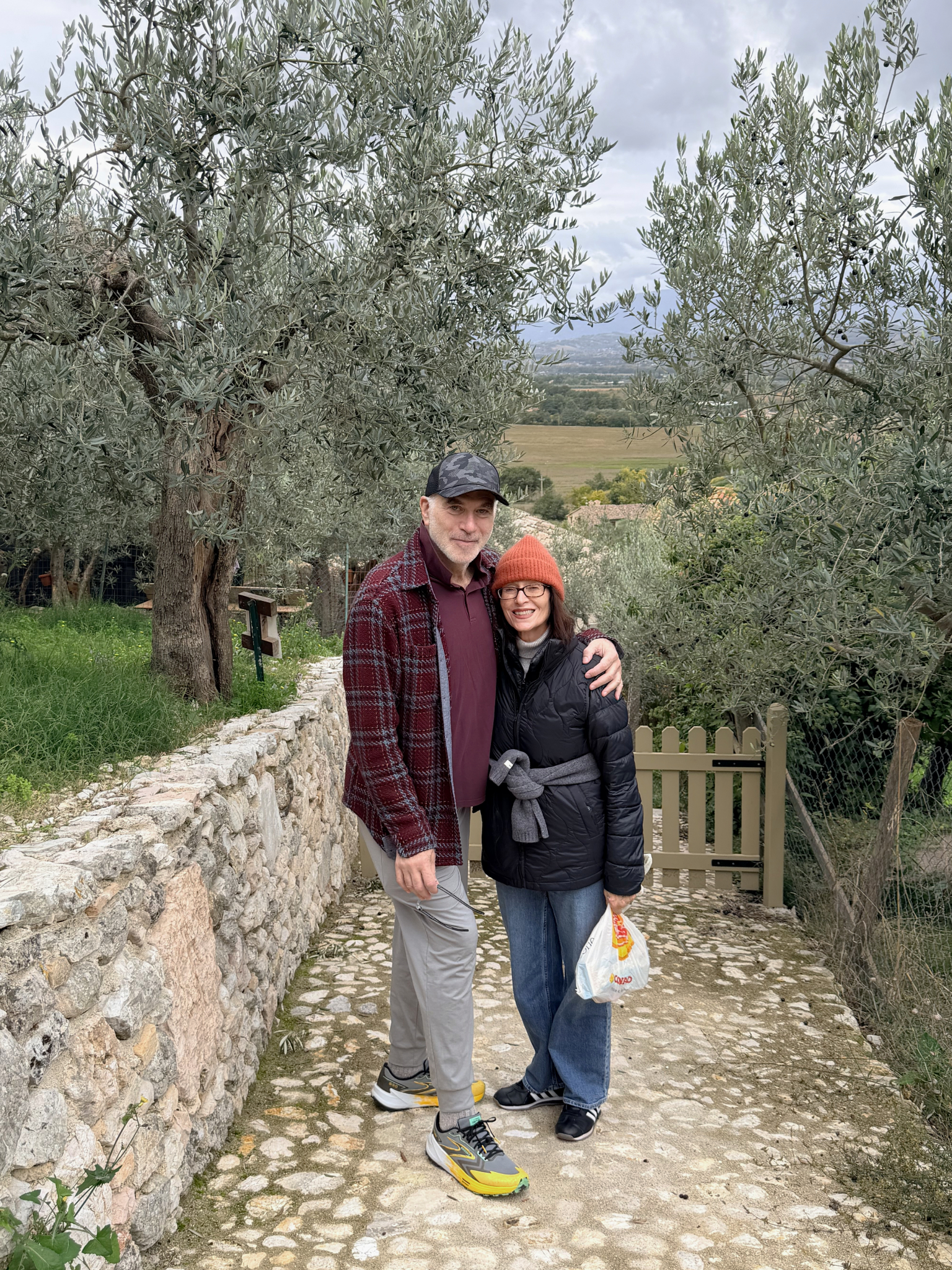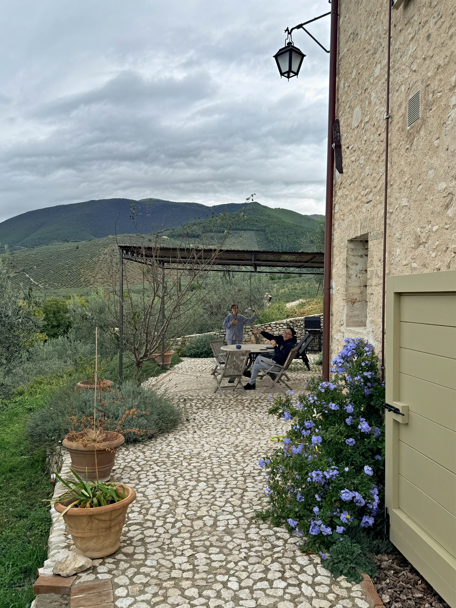 Our final day was dedicated to the traditions of the land. Karen and I joined Jim to pick up provisions, stopping first at Tartufi Alfonso Fortunati for truffle goods and then Norcineria Medei in Trevi for grilling sausages and Prosciutto di Norcia. Amy and Jim prepared a traditional feast on their scenic “sunrise terrace” overlooking the Val Umbra, followed by an afternoon of olive picking in the groves surrounding the villa.