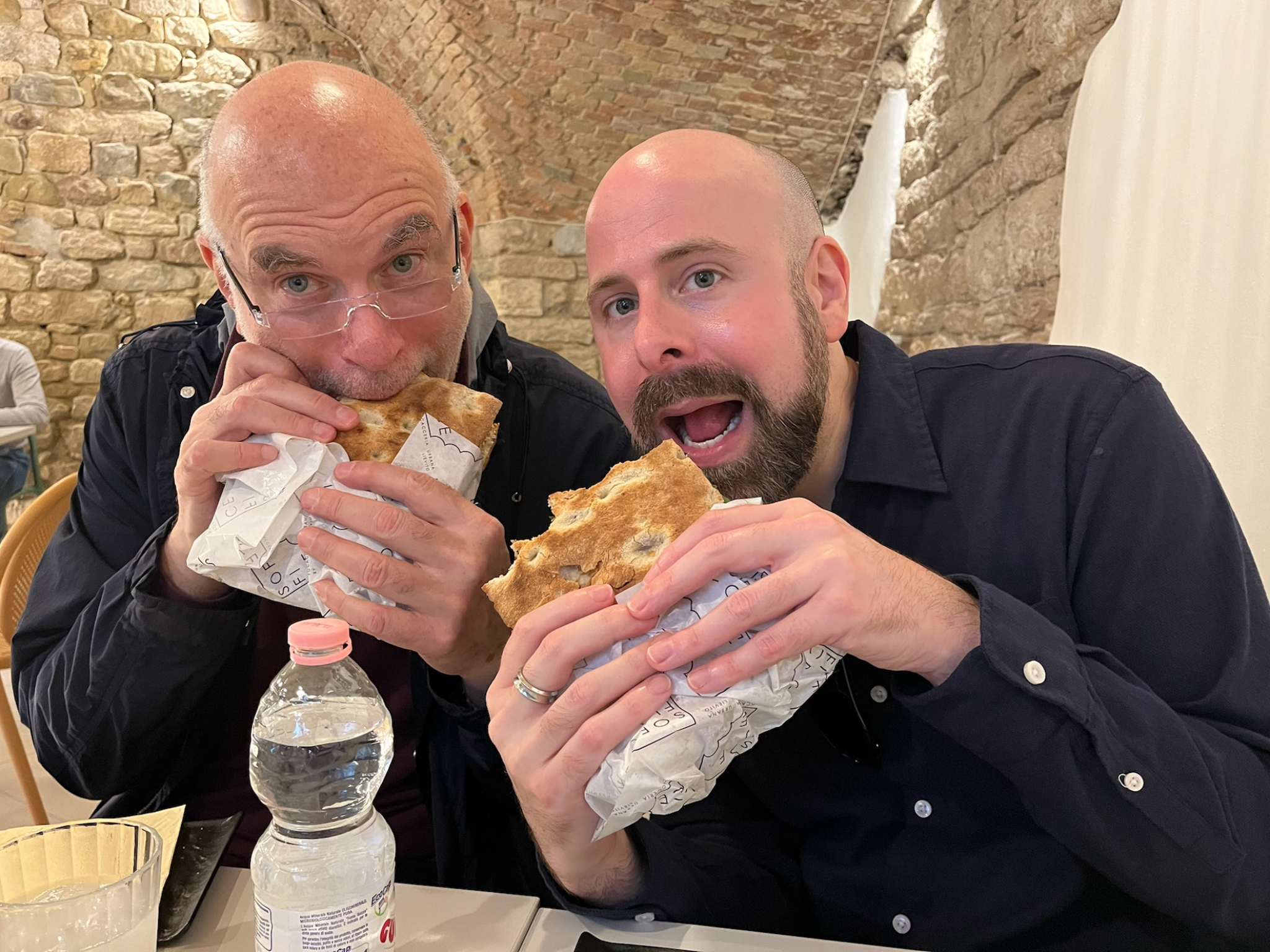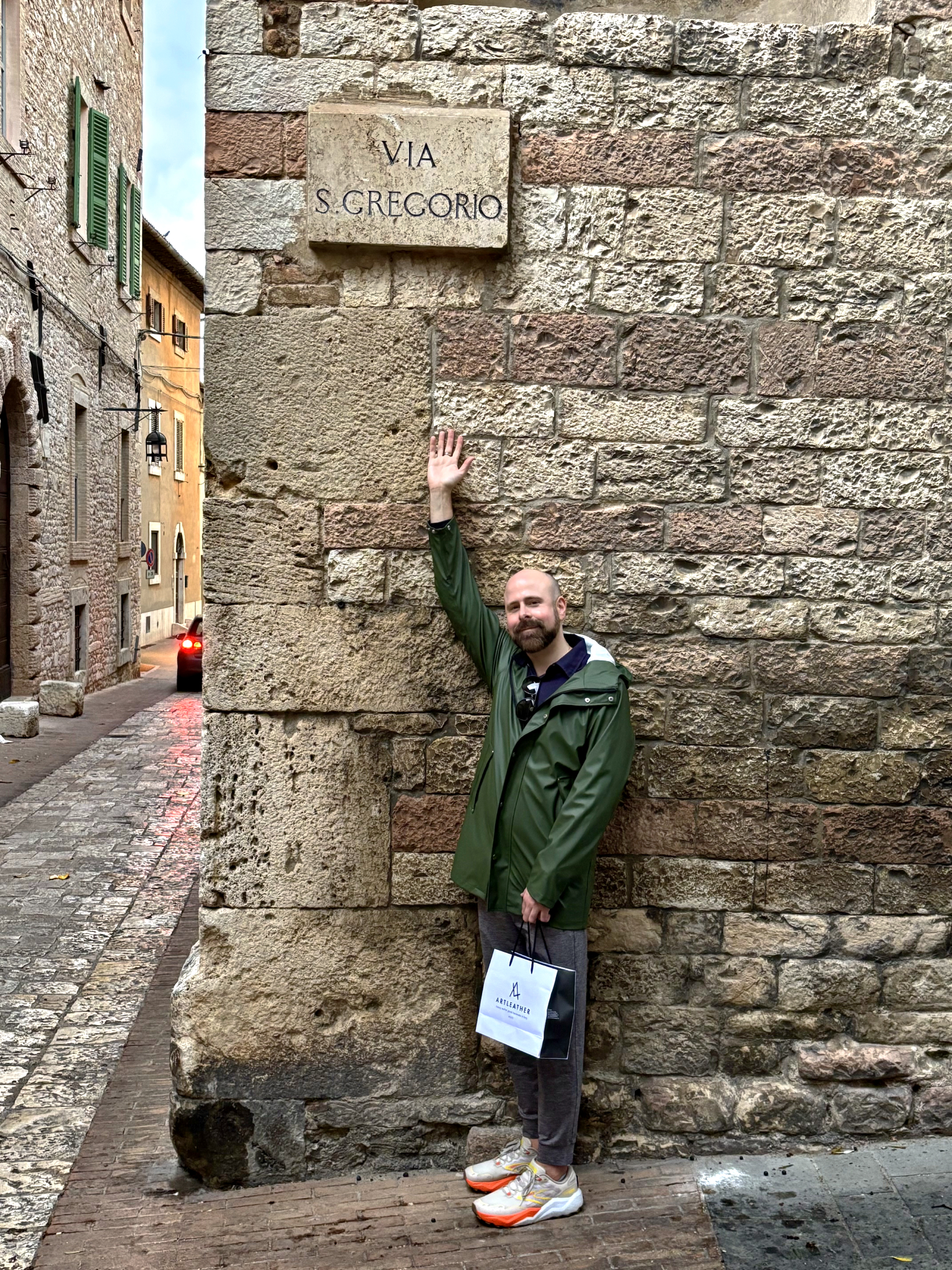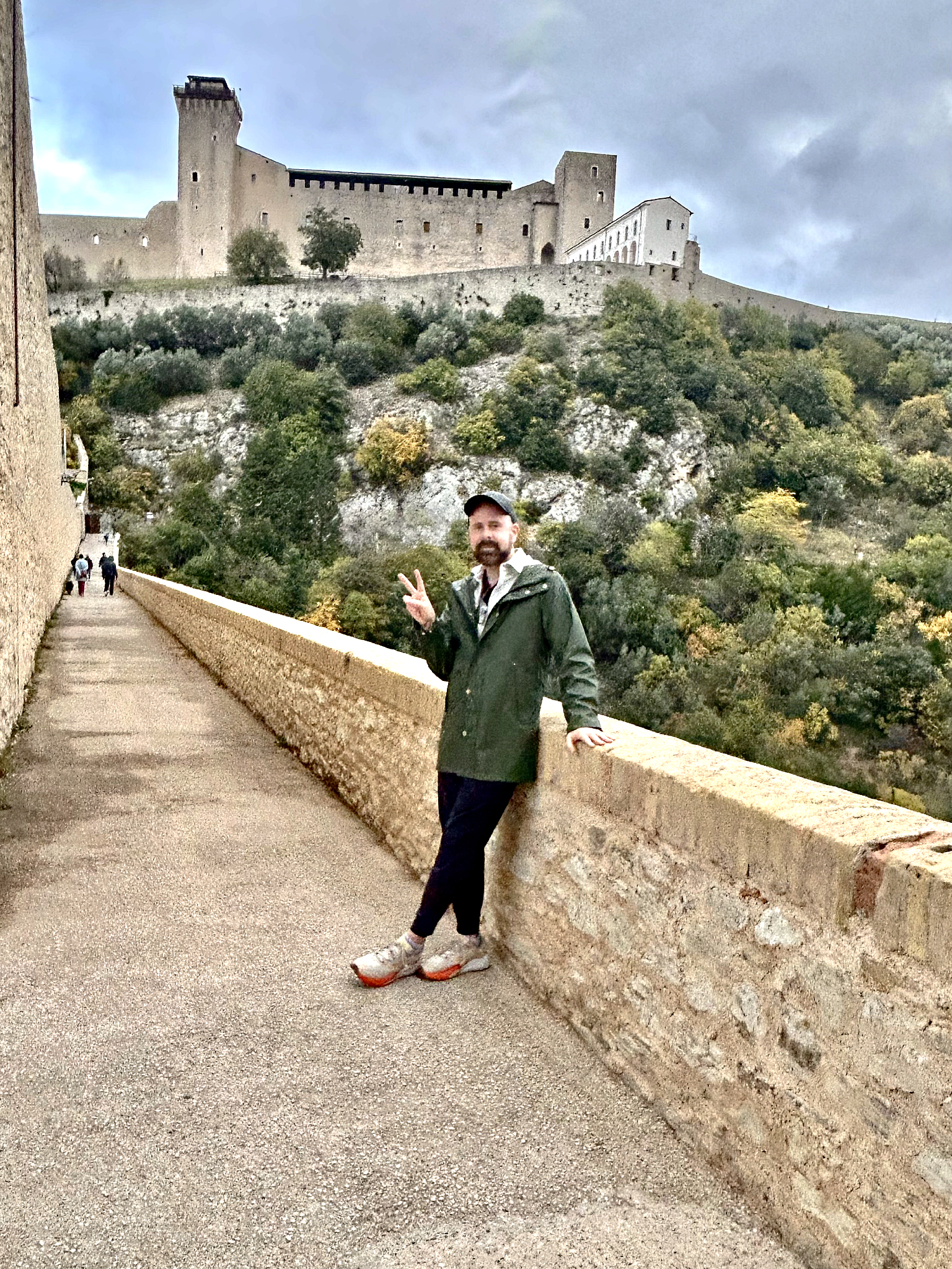 Perugia’s “Main Street” is lined with grand architecture and family-owned boutiques. I did some damage at Uberto Cantarelli, picking up a thick merino sweater with a johnny collar in a rich merlot and a navy corduroy hunting jacket with a satin lining. For lunch, we retreated to Focacceria Urbana, located in a subterranean grotto. I had one of the best panino of my life—the “Rustica,” featuring porchettina, caramelized onions, potato cream, and gorgonzola. Even our gluten-free companions, Karen and Tricia, were well looked after with a beautiful deconstructed spread of fresh ingredients.