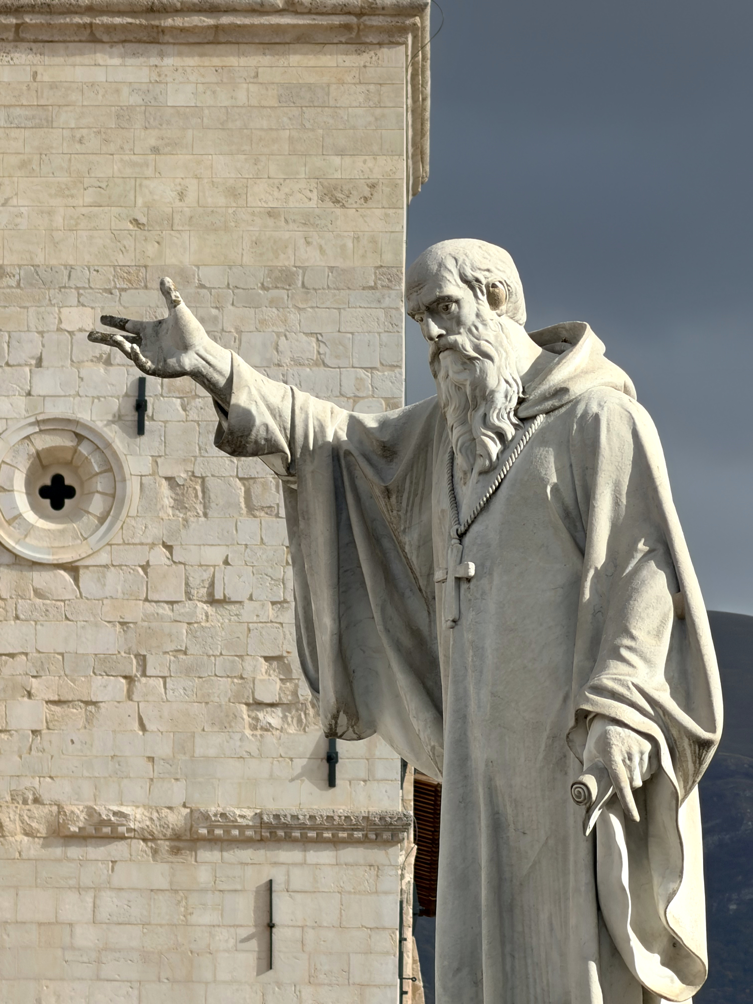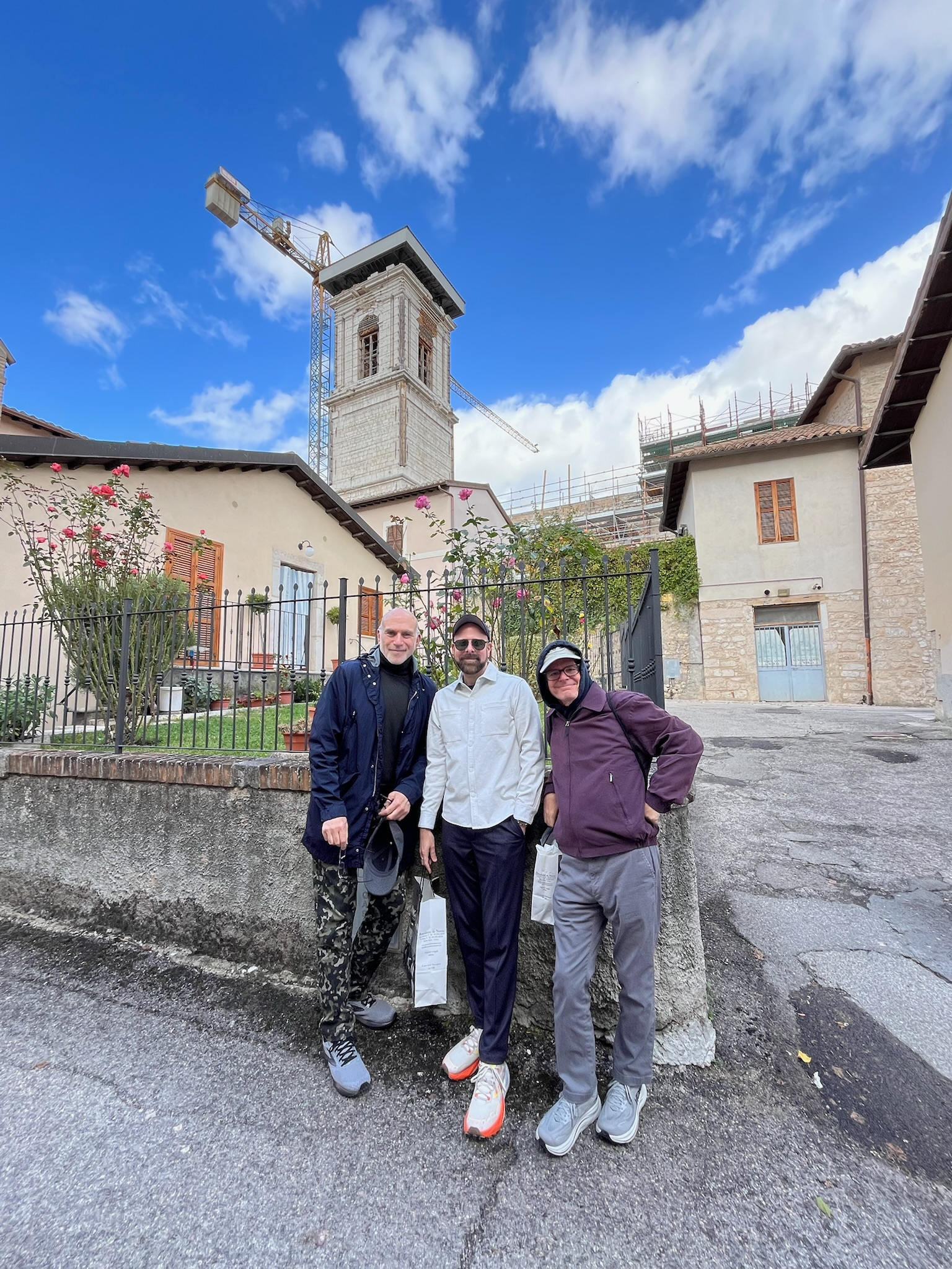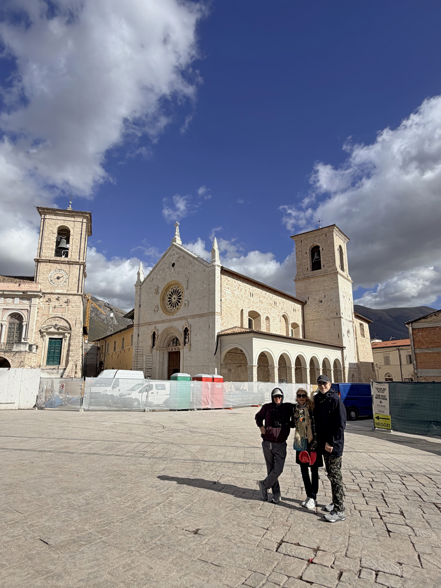 On the fourth day, Karen stayed behind to pick olives with Amy while the rest of us drove into the Valnerina, part of the Central Apennines. We stopped in Norcia, a town off the beaten path that is still bravely rebuilding from the devastating 2016 earthquake. Norcia is historically significant as the birthplace of Saint Benedict, but the 6.6-magnitude quake caused catastrophic damage, famously toppling the 14th-century Basilica of San Benedetto, leaving only its façade standing, and severely damaging the Concattedrale di Santa Maria Argentea.