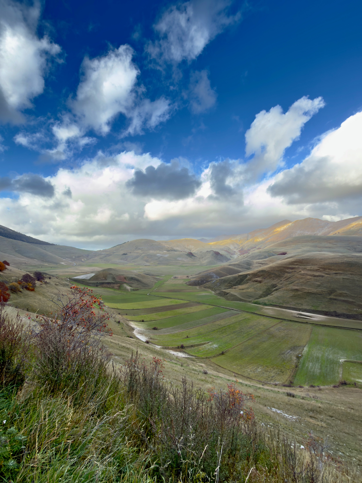 From Norcia, we ascended a winding mountain road into Monti Sibillini National Park, crossing the border between Umbria and Le Marche. At the ridge, the Piano Grande came into view—a vast, high-altitude karst basin that looked utterly sublime in the late afternoon light. This ancient lakebed, sitting at nearly 1,500 meters, is a geological marvel surrounded by the limestone peaks of the Sibillini range. Historically, the “Great Plain” has been the lifeblood of the mountain people, famous for the cultivation of the IGP Lentils of Castelluccio and the seasonal transhumance of sheep.