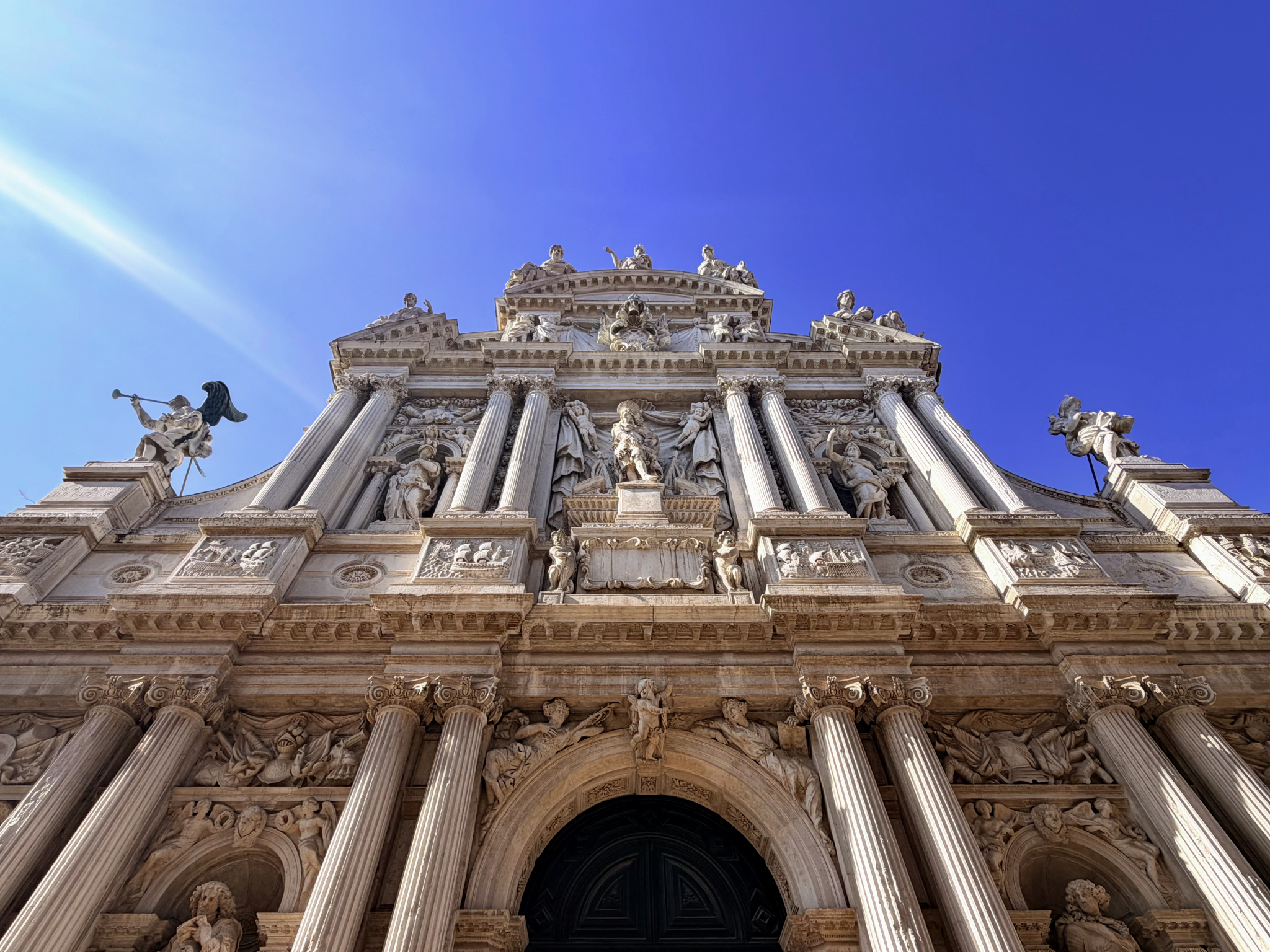 Our walk took us through Campo San Maurizio and Campello Santa Maria Zobenigo. We stopped to marvel at the Baroque facade of Chiesa di Santa Maria del Giglio, rebuilt in 1681. The statues and friezes are so densely packed and ornate that you find yourself wondering how 17th-century masons managed to assemble such a stone tapestry.