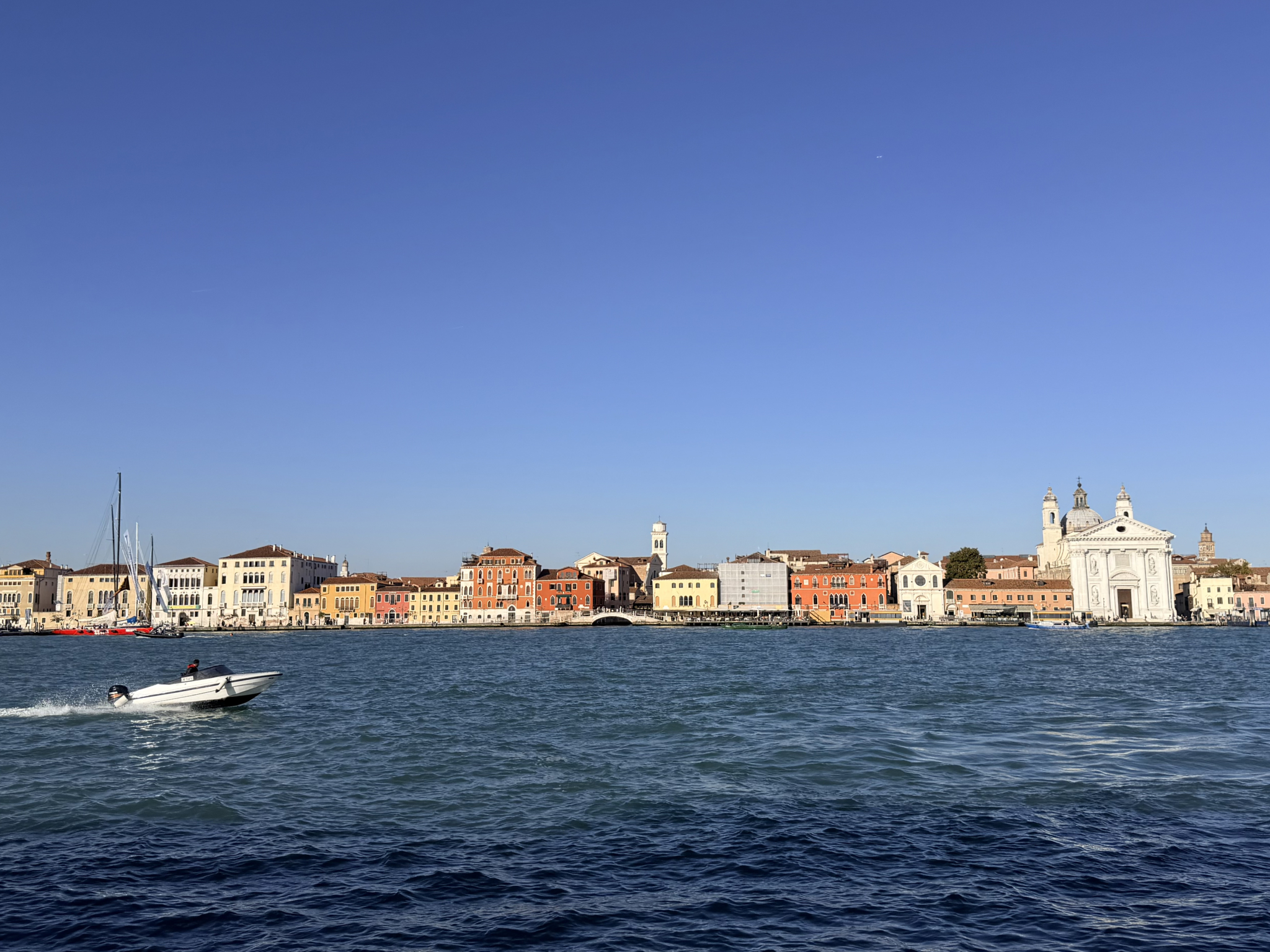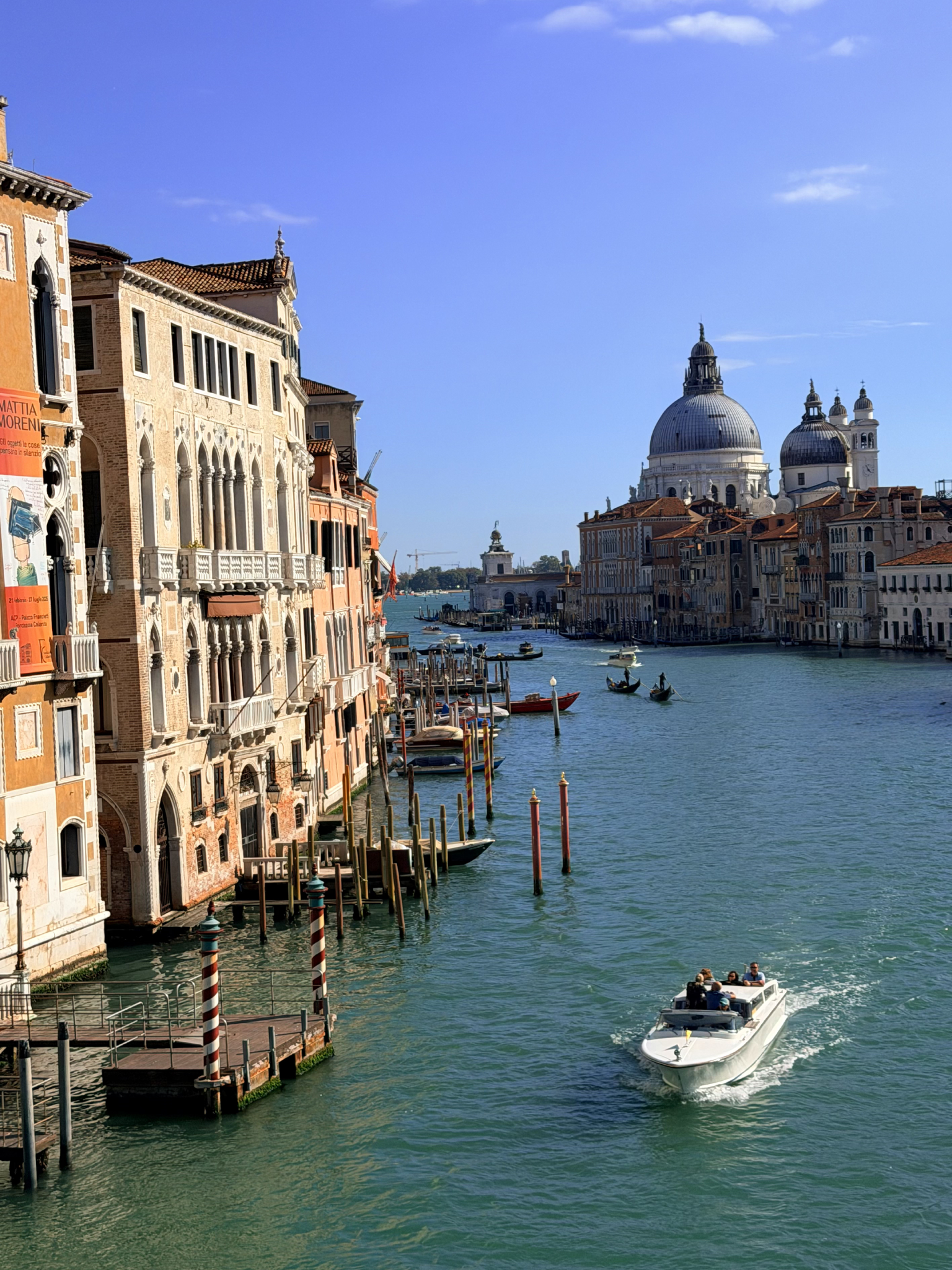 Our captain took us on a breathtaking route, first sweeping through the Bacino di San Marco, that vast, sparkling expanse of water where the Grand Canal meets the lagoon. We glided past the Punta della Dogana—the 17th-century customs house marked by its iconic golden globe—and then headed up the Grand Canal itself. Seeing the historic palazzos from the vantage point of a private boat is a completely different experience than the crowded vaporettos; you can truly appreciate the architectural layers of centuries past. We then cut through the atmospheric, narrow canals of Cannaregio, where the laundry hangs between buildings and the city feels most authentic. Finally, we broke out into the vast, open expanse of the lagoon, the water turning a deep, glassy blue as we set our sights on the colorful horizon of Burano.