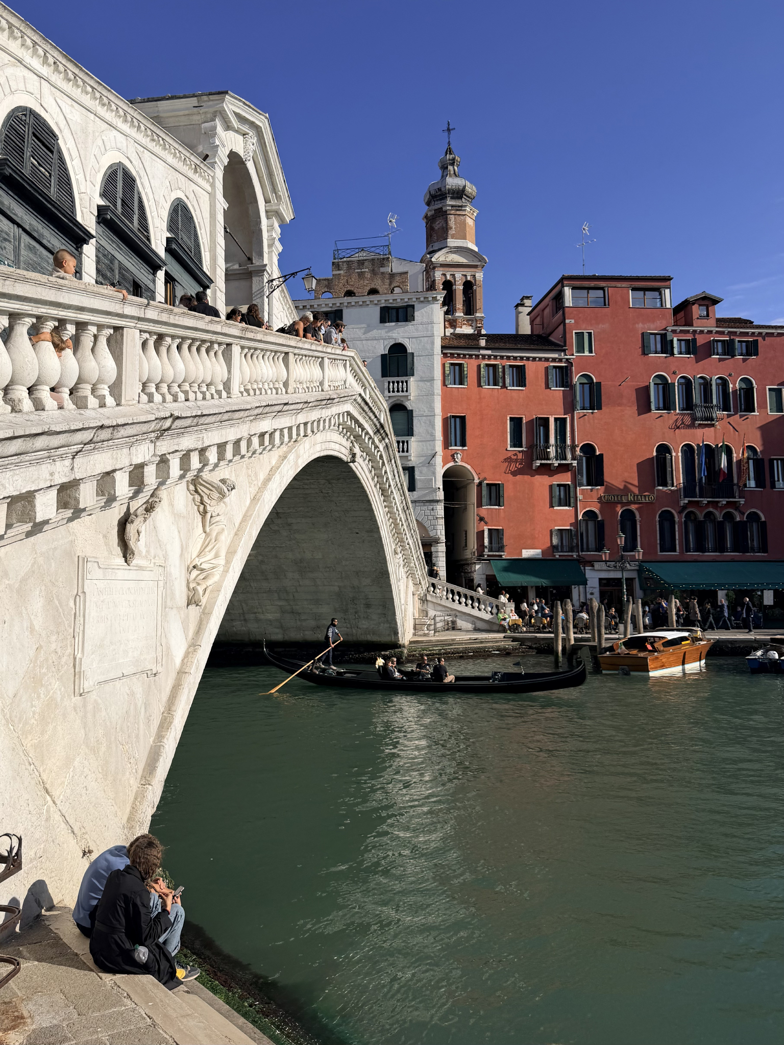 We eventually wound our way to the Ponte di Rialto. Completed in 1591, it is the oldest of the four bridges spanning the Grand Canal. Despite the swarms of tourists, we cleared a small patch of railing to soak in the mid-afternoon October sun before retreating to the quieter lanes of Dorsoduro.