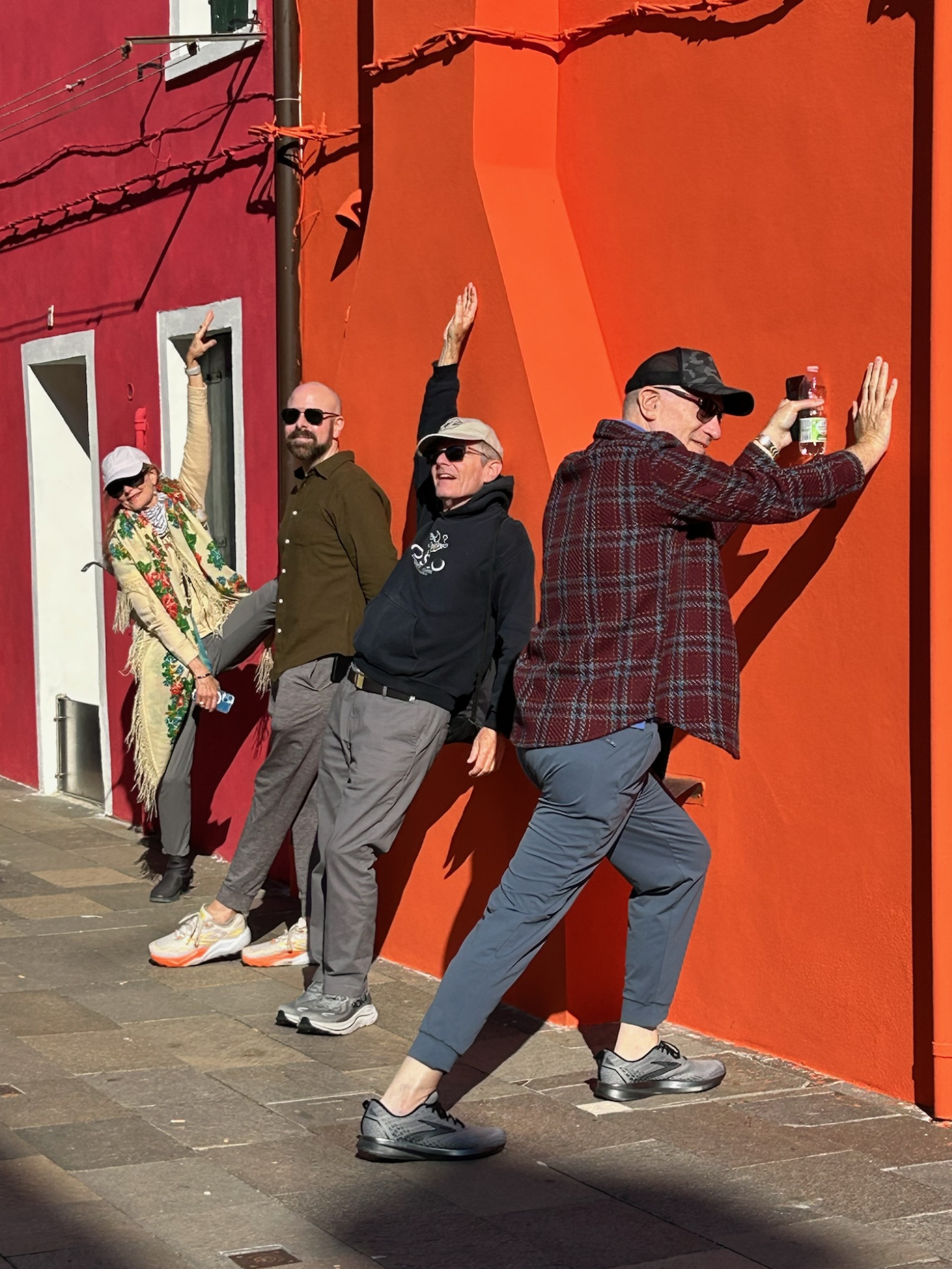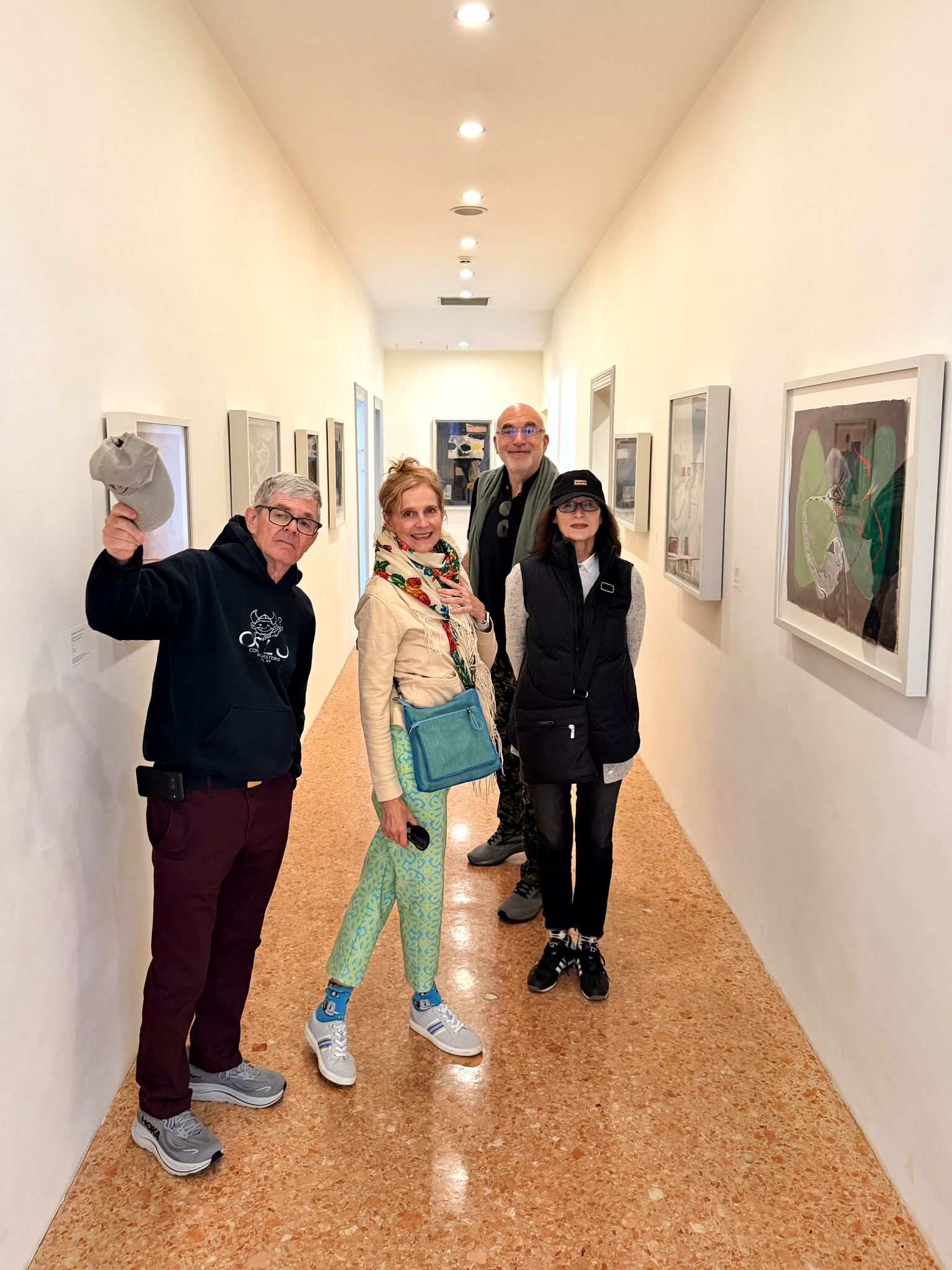 At the neighboring gallery, Spazio Punch, we had the rare Venetian luxury of complete solitude. We found ourselves alone in a darkened room dominated by a hypnotic video installation featuring a prismatic strobe. Richie, drawing on his background as an amateur tap dancer, seized the moment and guided our group through a series of choreographed moves in front of the flashing screen while I captured it all on film. It was a moment of pure, unadulterated spontaneity—the kind of “you had to be there” memory that defines a great trip.