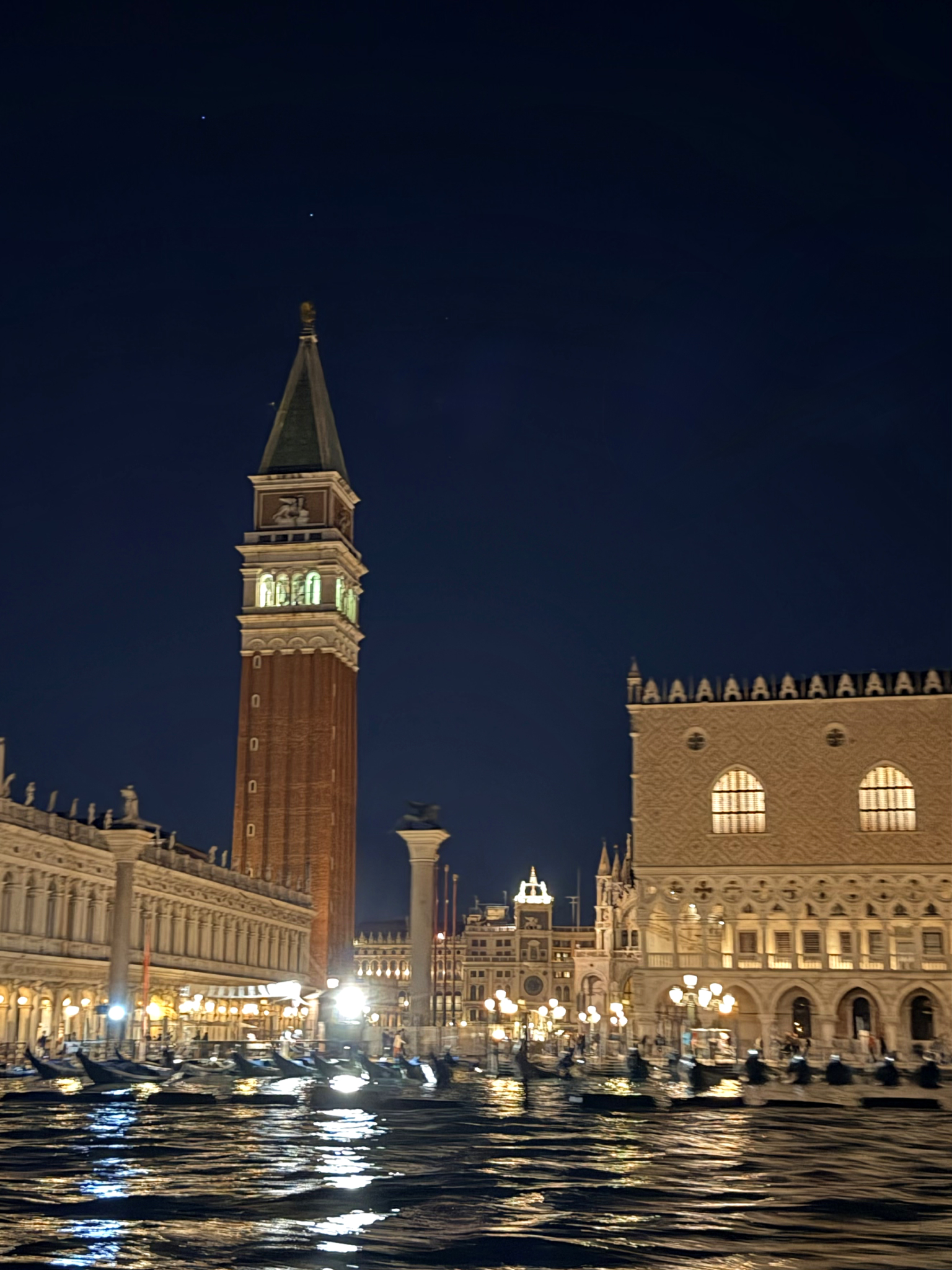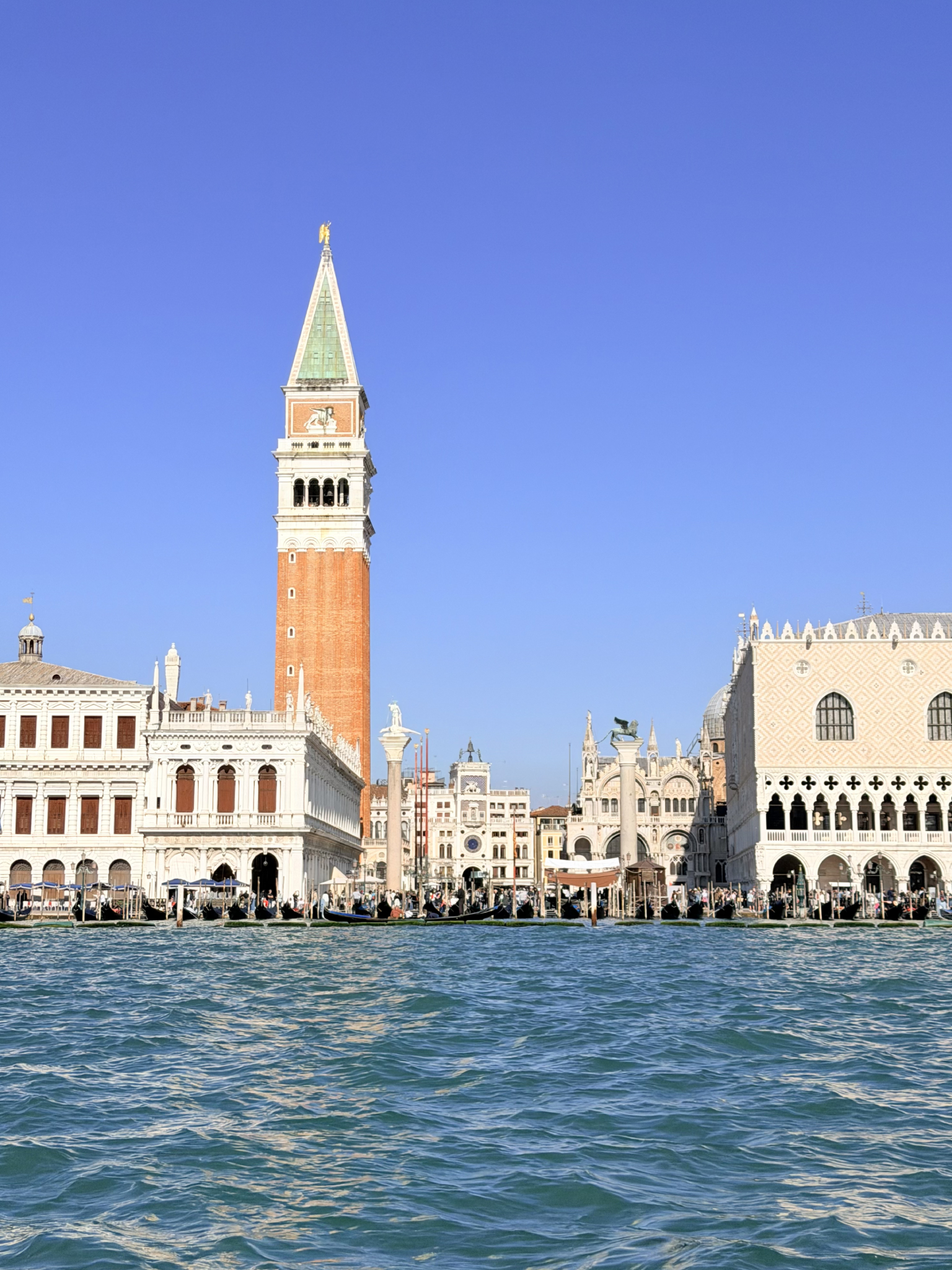 Passing through the arcades into Piazza San Marco, the crowds were indeed teeming. Yet, the square—Napoleon’s “finest drawing room in Europe”—still commands absolute awe. We stood before the Basilica di San Marco, a masterpiece of Italo-Byzantine architecture with its shimmering gold mosaics, flanked by the Gothic Palazzo Ducale and the towering Campanile.